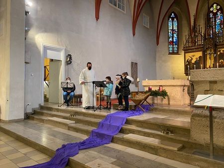 Auch in diesem Jahr gestaltete Herr Gaßner wieder eine Andacht für unsere Schule - unter Mitwirkung von Frau Hauenstein, Herrn Weich und zahlreicher Schüler wurde gesungen, gebetet und der Weg zur Weihnachtsgrippe szenisch dargestellt.