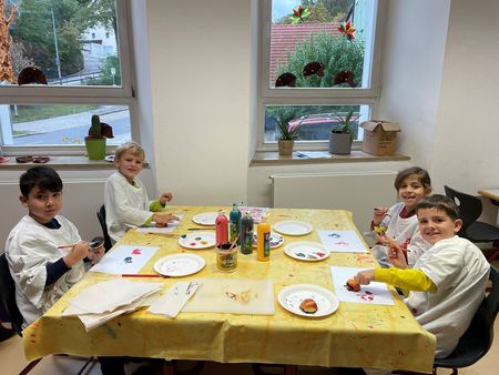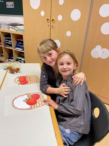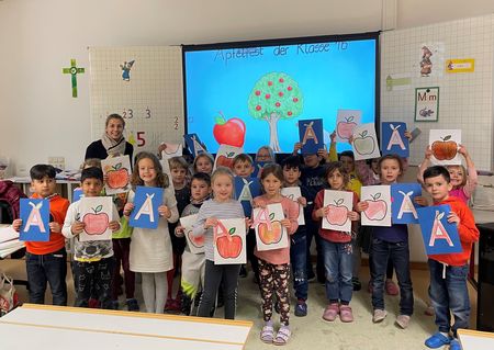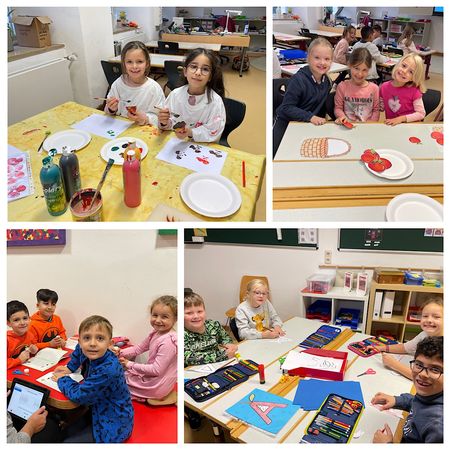 Dort gab es fächerübergreifende Stationen, wie beispielsweise mit Äpfeln rechnen, den Buchstabe A basteln, ein Gedicht zum Thema anhören und einen Apfeldruck erstellen.