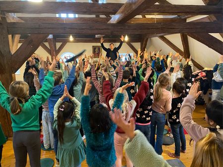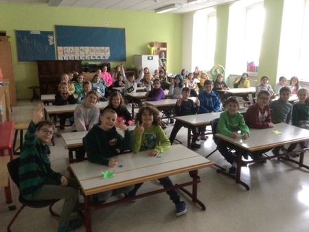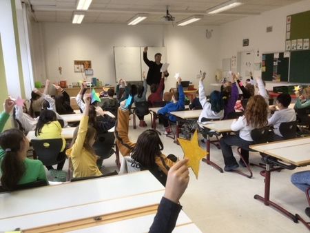 Alle Schüler und Lehrer sind an diesem Morgen in "Krokofilgrün" erschienen – die dritten und vierten Klassen haben zudem fünfzackige Sterne zur Einstimmung vorbereitet: