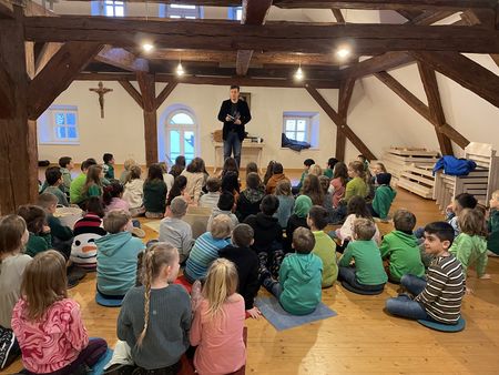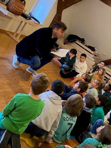 Der Autor Armin Pongs besucht uns und liest den Kindern aus seinen Büchern vor. Ein wesentlicher Beitrag zur Lese- und Zuhörerziehung – da in vielen Familien das Lesen – und v.a. auch das Vorlesen an Bedeutung verloren hat. Wir wollen so die Kinder wieder an diese Kulturtechnik heranführen und Interesse und Begeisterung für das Lesen wecken oder vertiefen.