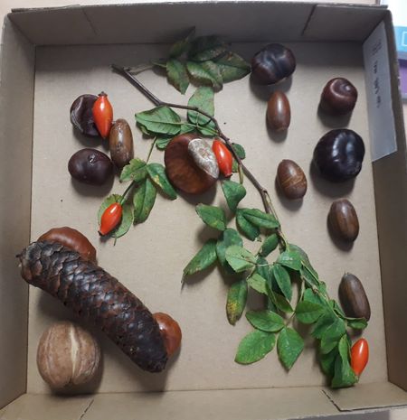 Mit gesammelten Naturschätzen gestalten die zweiten Klassen beeindruckende Kunstwerke.