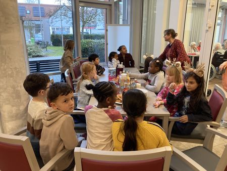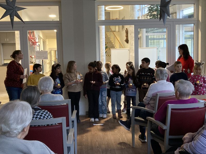 Diese Woche besuchten einige Kinder der OGTS die Senioren im Marienheim. Sie überraschten die Bewohner mit selbstgebastelten Adventslichtern und sangen einige Weihnachtslieder.