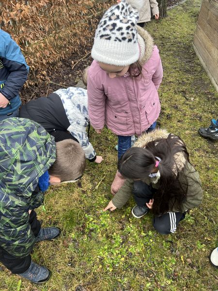 Der Feldsalat, den die 2a im Herbst eingesät hat, wächst und gedeiht! Es herrscht große Freude bei den Kindern, die sich schon auf einen leckeren Salat freuen.