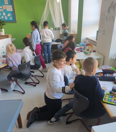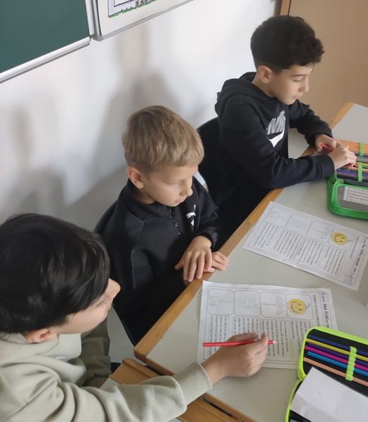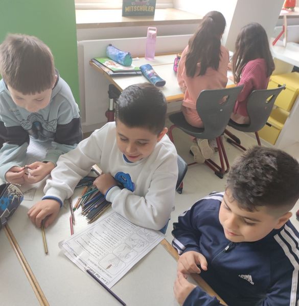 Am Donnerstag vor den Herbstferien bekam die Klasse 1b besonderen Besuch: Die Schülerinnen und Schüler der 3c kamen vorbei, um spannende Halloweentexte vorzulesen. Die Erstklässler hörten aufmerksam zu und durften passende Bilder zu den Geschichten ausmalen. So entstand eine gemütlich-gruselige Stimmung – ein schöner Start in die Ferien!