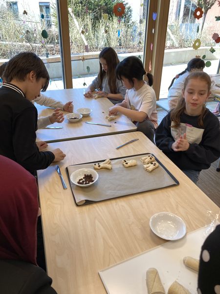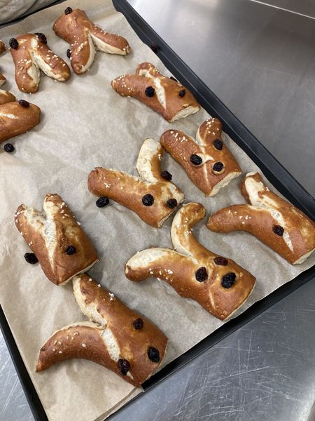 Heute war Backtag in der OGTS. Ganz eifrig wurden Hasen geformt, in kurzer Zeit war der ganze Teig verarbeitet und alle freuten sich über die Laugenhäschen.
