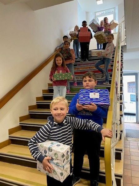 Viele Kinder haben wieder Pakete mitgebracht, die sie zu Hause mit ihrer Familie vorbereitet haben und die sich nun auf den Weg zu Kindern machen, denen es nicht so gut geht und die auch das Gefühl von Weihnachten erleben sollen. Die Pakete fahren Richtung Moldawien, Bulgarien, Rumänien und in die Ukraine.