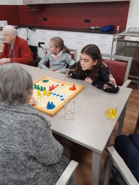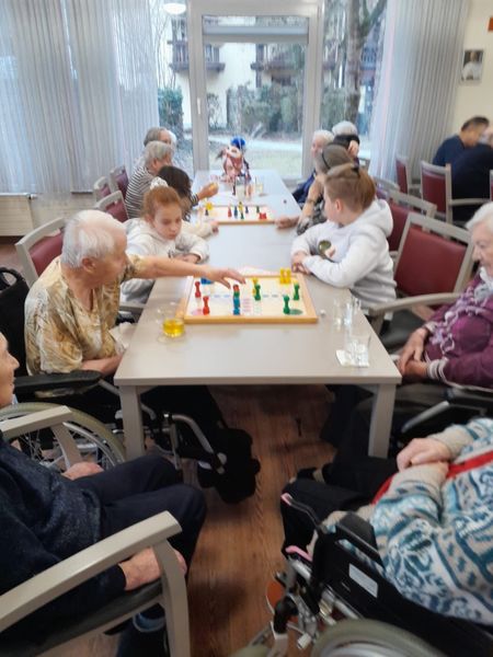Heute war „Mensch ärgere dich nicht“ beim Besuch im Marienheim am Programm. Beim Würfeln, Zählen und Mitspieler Rauswerfen verging der Nachmittag wie im Flug.
