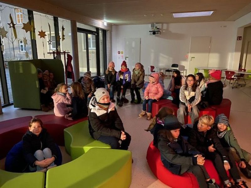 Im Dezember können die Schüler wieder jeden Morgen vor dem Unterricht eine Viertelstunde "Advents-Luft" schnuppern und in gemütlicher Atmosphäre in der Aula einer kurzen Geschichte zuhören.
