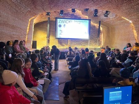 Die Klasse 2a durfte im Rahmen des Zwickl-Dokumentarfilmfestivals zu einer eigens für die Grundschule gestalteten Vorstellung in den Kulturkeller des Felsenkellers kommen. Gezeigt wurde der Film „Dancing Abullah“, eine Dokumentation über einen 12-jährigen Jungen, der mit seiner Familie aus Syrien geflohen ist und seine Erlebnisse sehr erfolgreich beim Tanzen verarbeitet.